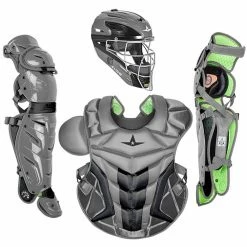 Included is a MVP2500-GTT Graphite Two-Tone Catching Mask, CPCC40PRO Chest Protector, and LG40WPRO Leg Guards. This set is recommended for any serious ball player who demands high function and performance from their gear.